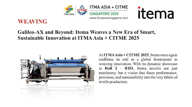 Weaving Itema Weaves a New Era of Smart, Sustainable Innovation at ITMA Asia + CITME 2025 October 7, 2025 manager